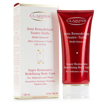 Reafirma, tersa, realza y define la piel flácida del abdomen y la cintura hasta recuperar el tono y las formas atractivas. Su agradable fórmula de gel cremoso incorpora Pueraria lobata y el exclusivo extracto de camarina negra de Clarins.